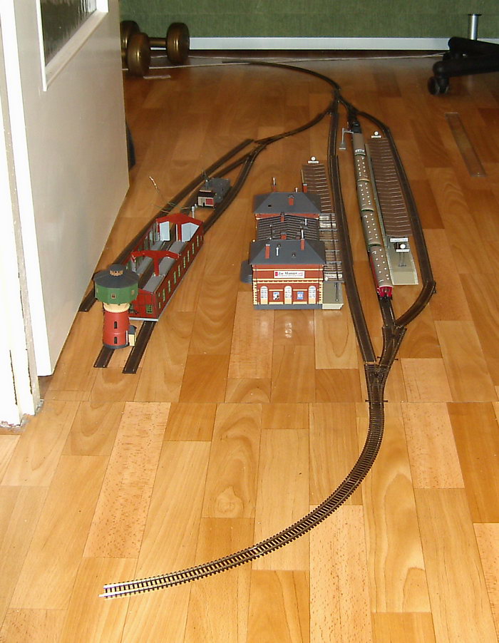 Szybko okazało się, że mały pokój jest za mały i muszę zająć drugi pokój, czyli salon. Ponieważ było tam więcej miejsca, to wydłużyłem tory stacyjne i samą stację o budynek poczty i wyszedł taki oto gigant, który był moją dumą i chyba największym dworcem TT. Do tego oświetlonym.